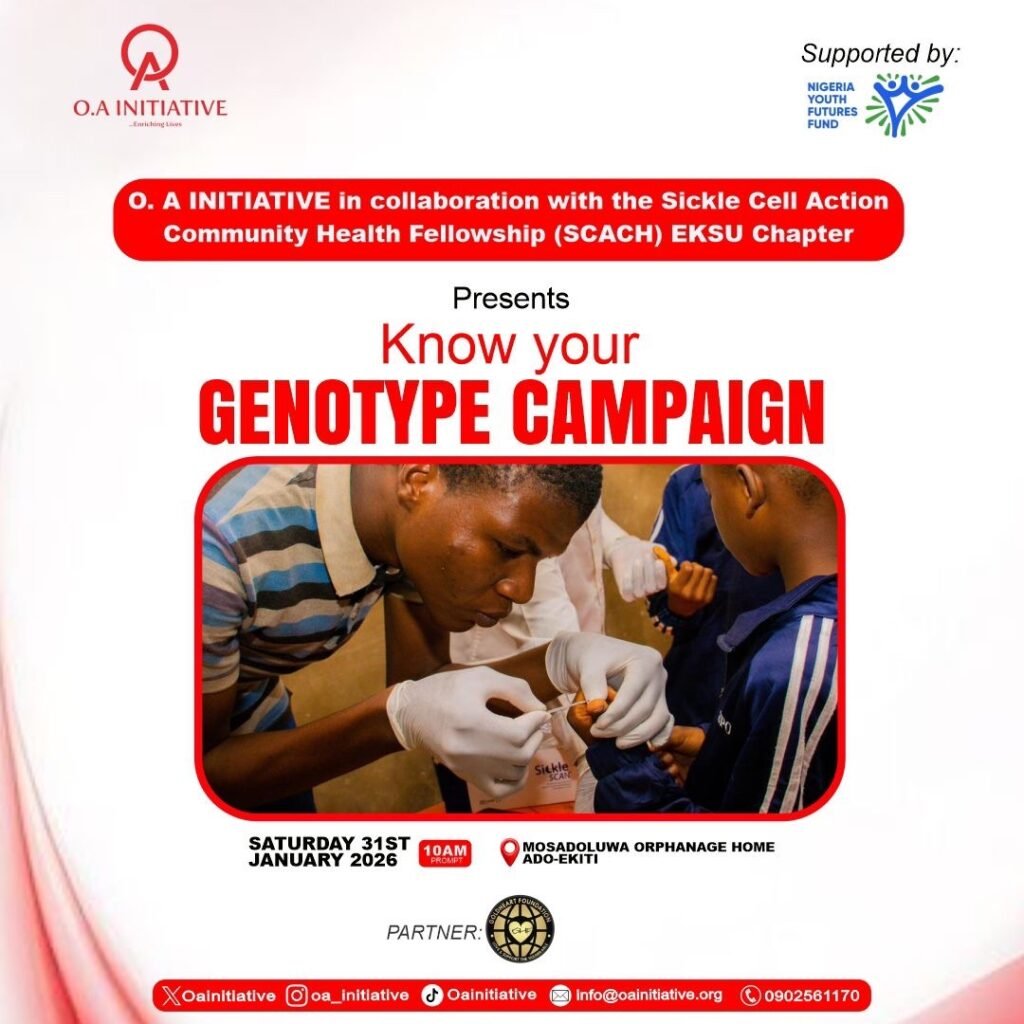 On Saturday, January 31, 2026, the GoldHeart Foundation partnered with O.A Initiative and the SCACH EKSU Chapter, with funding support from #NYFF, conducted a vital health screening exercise. We successfully tested the genotypes of 60 beneficiaries, including children and staff at the Mosadoluwa Orphanage and Ederly Home Ado-Ekiti.